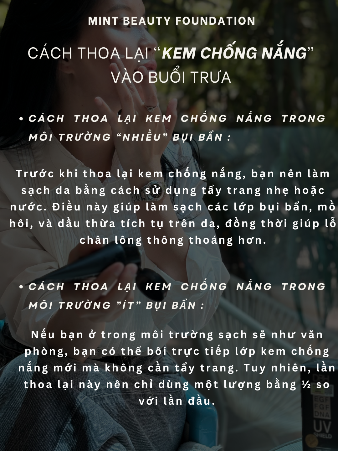 - Cách thoa lại kem chống nắng trong môi trường nhiều bụi bẩn