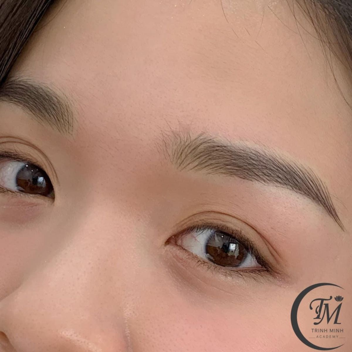 - Giai đoạn sau 1 tháng: Chân mày ổn định màu, trở nên nhạt hơn lúc bong vảy, sau đó đậm dần nhờ màu mực được đẩy lên bề mặt.